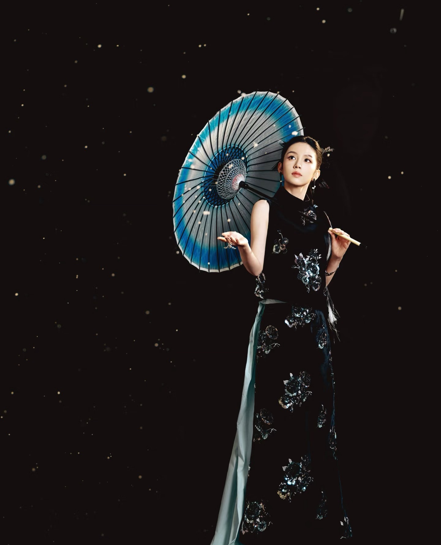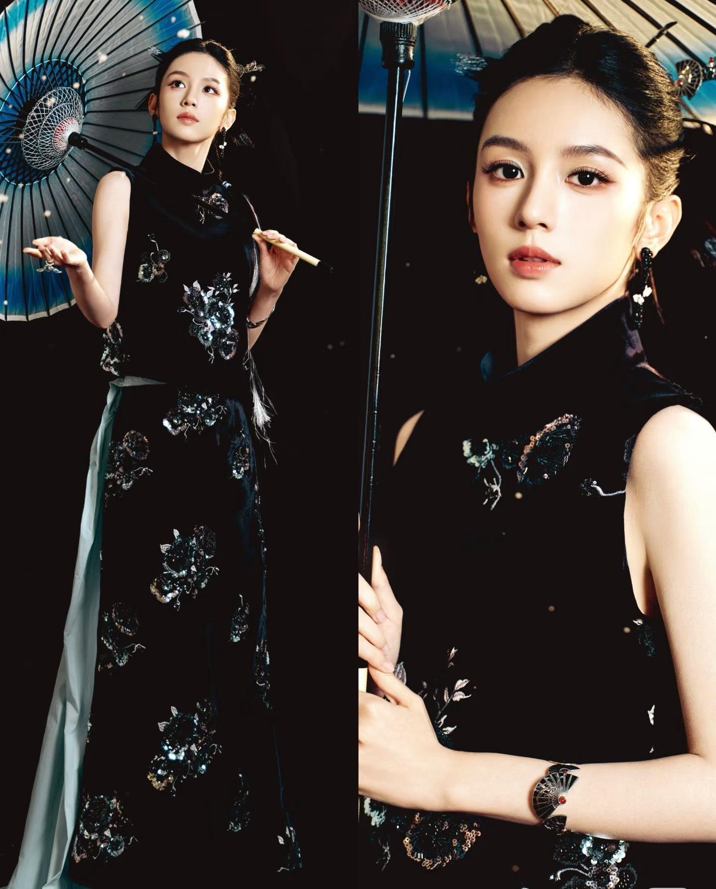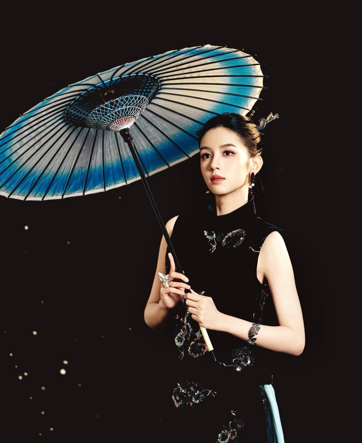 周也旗袍发簪造型周也打油纸伞 好美啊完全适配的造型