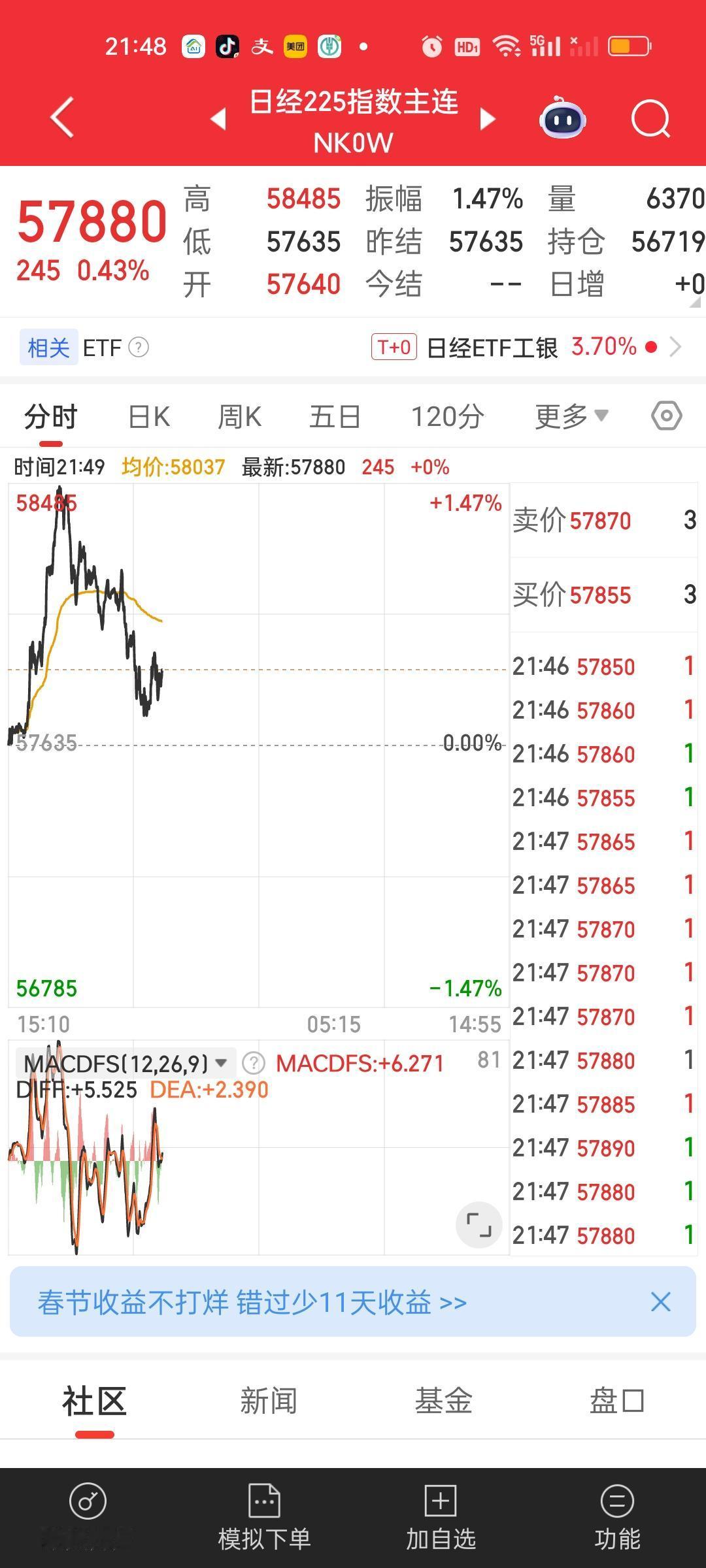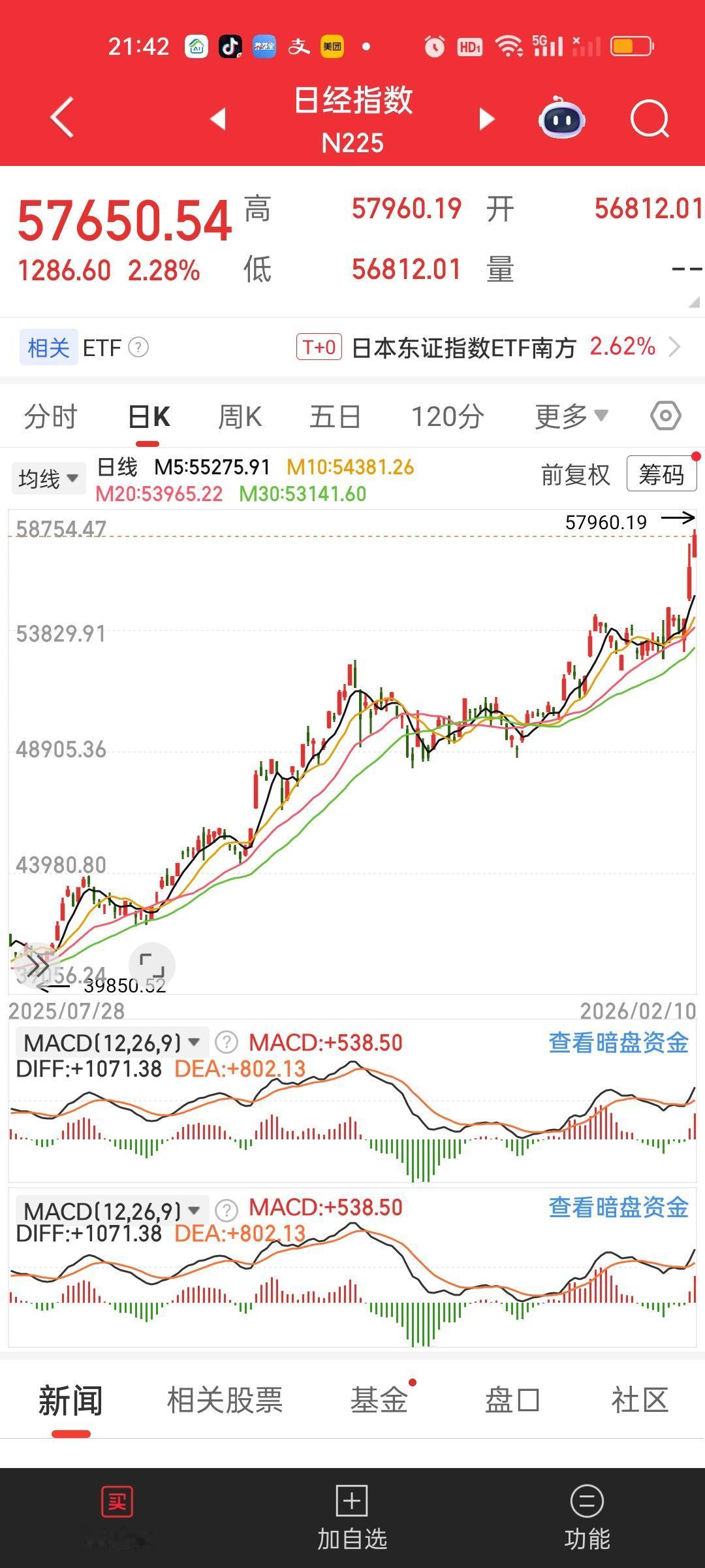 就在今天,小日子的股市再创历史新高,晚上期指又是上涨的状态,总感觉它们这次上涨有某种神秘力量在推动。否则不可能像疯牛一般的暴涨,这明显像是在释放某种压抑许久的情绪。或许它们民间也觉得自己压抑的太久了,失去了太多年。所以这次情绪集中爆发出来了。