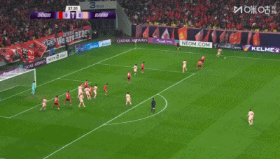 第11分钟,杨明洋前场抢断成功,韦世豪与费利佩打出撞墙配合,韦世豪远射打偏。↓