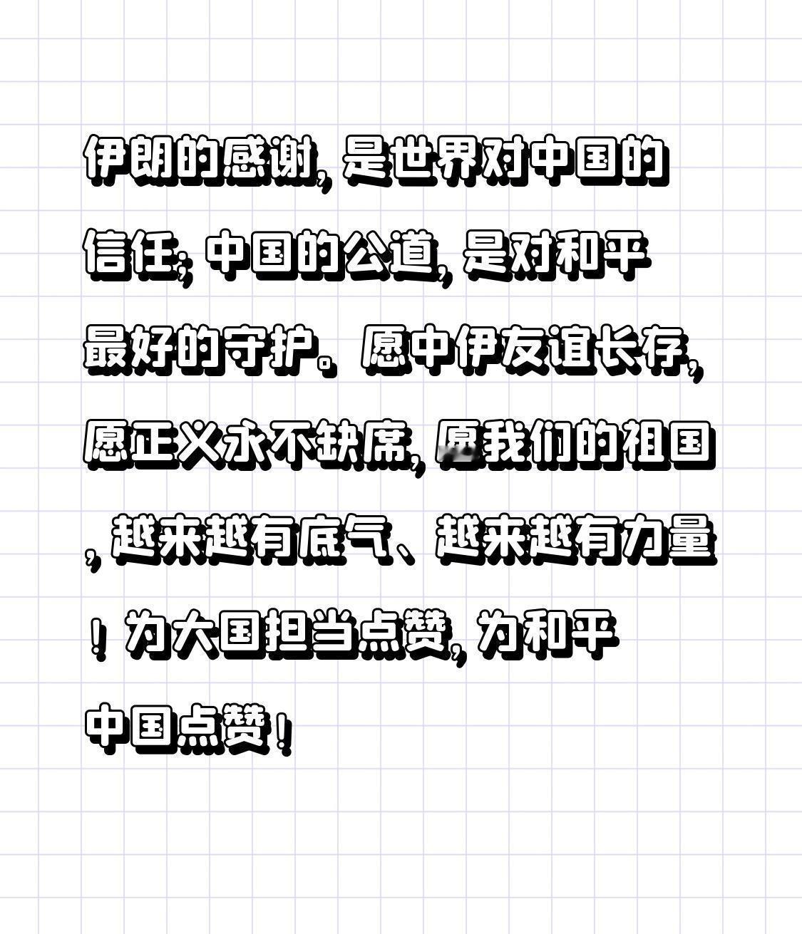 伊朗感谢中方主持公道!一句致谢背后,是中国的大国担当 全网振奋!伊朗驻华大使公开郑重表态:感谢中方主持公道!这短短一句话,分量千钧,让无数国人倍感自豪。 近期中东局势复杂紧张,伊朗面临外部制裁、军事威胁等多重压力,国际舆论场杂音不断。就在这样的关键时刻,中国始终站在公平正义一边,在联合国、上合组织等多边场合仗义执言,明确支持伊朗捍卫主权、安全和民族尊严,反对单边霸凌、武力施压与干涉内政。 很多人以为,这只是一次普通外交互动。转折点来了:这不是临时表态,而是中国一以贯之的大国立场。从推动伊核协议谈判,到反对极限施压,再到坚定维护发展中国家正当权益,中国从不选边站队,不搞双重标准,只以事实为依据、以国际法为准绳。 2026年是中伊建交55周年、全面战略伙伴关系10周年,这份感谢,是信任,是认可,更是对中国外交理念的高度赞同。我们不惹事、不挑事,但在大是大非面前,绝不沉默;在强权霸凌面前,绝不妥协。 有人说,国际事务离我们很远。其实不然:一个公平合理的国际秩序,才能让我们安心发展;一个主持正义的中国,才能让海外同胞更有底气,让国家利益更有保障。弱国无外交,强国守公道,今天的中国,用行动赢得世界尊重。 从沙特伊朗复交,到多方冲突斡旋,中国始终做和平的建设者、正义的维护者。我们不搞霸权、不谋私利,只愿世界少一点硝烟,多一点安宁;各国少一点对抗,多一点合作。 伊朗的感谢,是世界对中国的信任;中国的公道,是对和平最好的守护。愿中伊友谊长存,愿正义永不缺席,愿我们的祖国,越来越有底气、越来越有力量! 为大国担当点赞,为和平中国点赞!