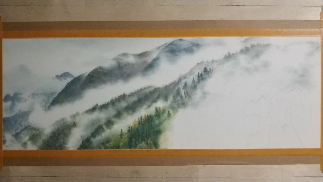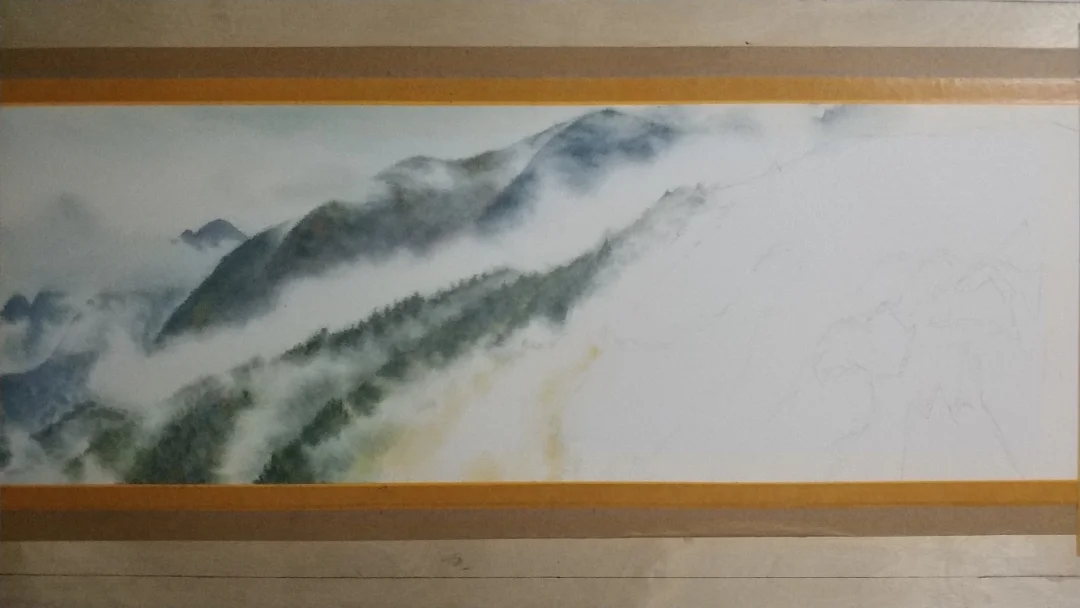 对开纸裁一半的尺寸。本来还想再画两三张雾,突然就没什么兴趣了,雾暂时就画到这儿吧。