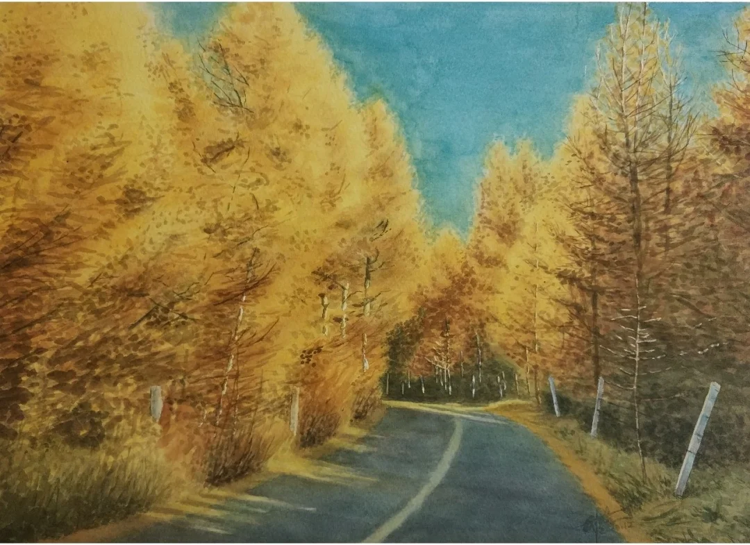 继续往东走,林子渐渐多了。黄叶还有很多,到底还有秋意。车子穿过一片片树林,阳光施了些魔法,两边的树便在闪闪发光。