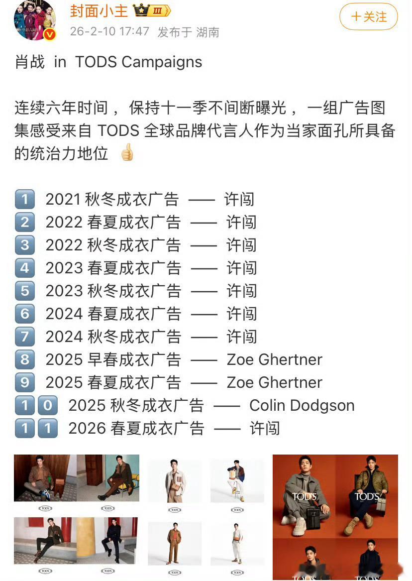 肖战tods 11次成衣大广,全球品牌代言人的当家地位!