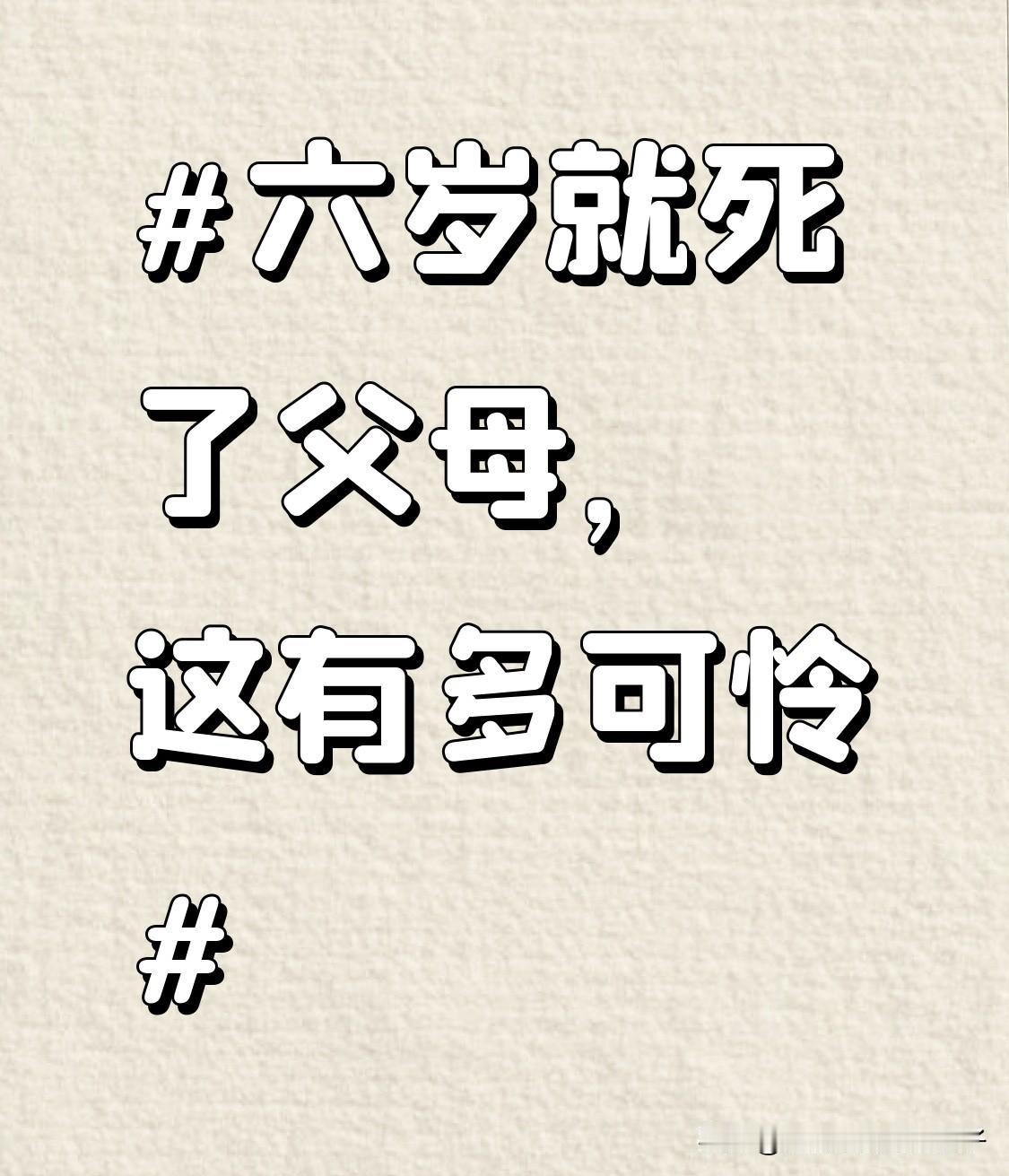 六岁就没了父母,那真的是人间至悲。想象一下,别的孩子在父母怀里撒娇,享受着无微不至的关爱,而这个六岁的孩子却要独自面对生活。 就像那些新闻里,父母眼睁睁看着六岁女儿离世而痛哭,孩子没了父母同样是天塌了。六岁正是对世界充满好奇、依赖父母的时候,没了父母,生活里少了指引,多了迷茫。他们可能在黑夜里独自害怕,在遇到困难时无人倾诉。这种可怜,是深入骨髓的,未来成长路上,缺失的亲情是无法弥补的伤痛。