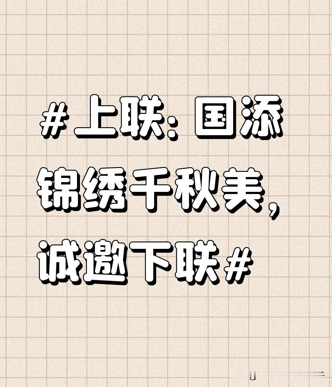 对联真是中华文化的瑰宝,“国添锦绣千秋美”这上联太有气势了。它描绘出国家不断繁荣,美好能传承千秋万代的宏大景象。 对下联得讲究对仗和平仄。从国家与人民的关系想,“民享安康万代欢”就不错,“民”对“国”,“享安康”对“添锦绣”,“万代欢”对“千秋美”,工整又有寓意,象征人民能长久安乐。也可以是“家聚祥和百事兴”,“家”对应“国”,“聚祥和”与“添锦绣”呼应,“百事兴”表示家庭诸事顺遂,和上联搭配起来,家国同辉的感觉就有了。
