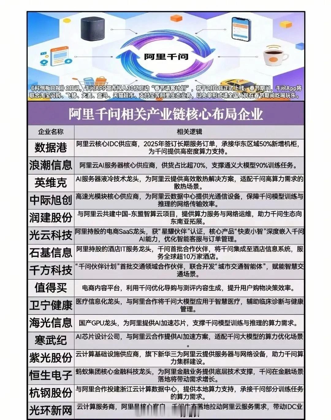 近日,AI应用概念利好频频:OpenAI计划本周在ChatGPT中推出新模型,技术迭代持续提速。阿里通义千问3.5发布在即,千问App下载量破千万;小红书OpenStoryline视频剪辑类AI产品测试中……(相关概念龙头名单见配图)