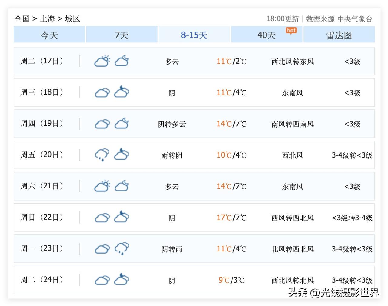 基本上,十拿九稳了!2月14日到18日,上海市,降雨降温……2月14日和15日,春运返程自驾车返乡的最高峰的两天,长三角的高速公路网,极有可能出现史诗级的超级大堵车,上海--苏州--南京,驱车时间超过24个小时,也不是完全没有可能的…… 2月16日到22日,总体来说,上海天气,也还凑合…… 不过,2月24日,可能会有西伯利亚南下的冷空气速冻上海……这是大趋势的中长期天气预报……
