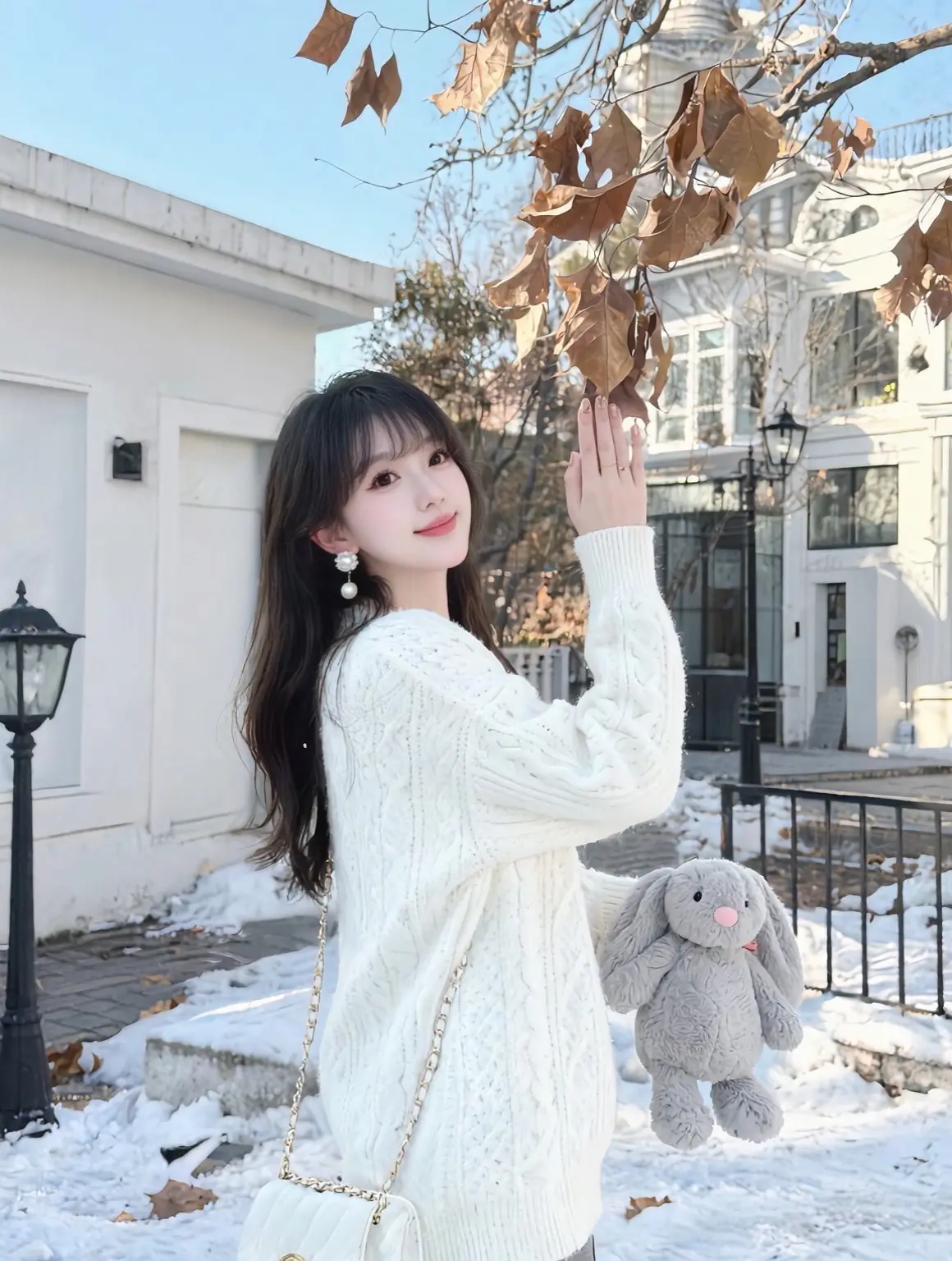 这套穿搭是日常宅家或轻出门的舒适范本!米白麻花毛衣温柔又松弛,橄榄绿短裙添了点复