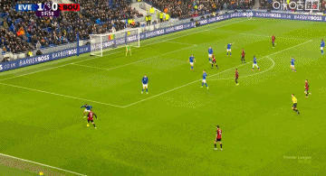 第10分钟,埃弗顿右侧角球开出,皮球来到禁区右侧,盖耶端向门前,恩迪亚耶脚后跟破门!但是边裁举旗示意越位,进球无效↓