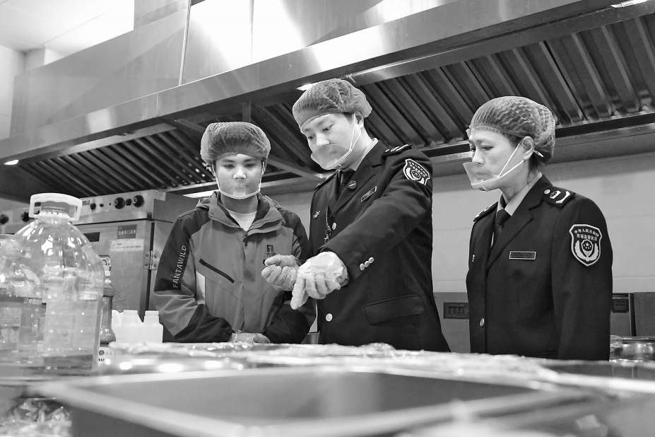 图一:执法人员对景区内一家餐厅后厨烹饪操作间进行检查。