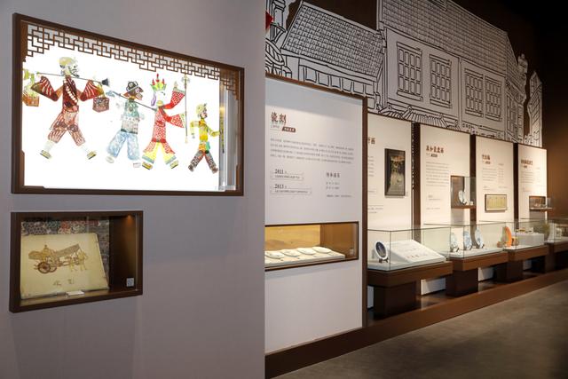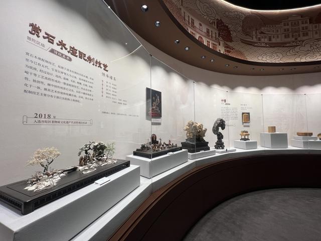 馆内以“百态”“康养”“妙音”三大主题板块系统展示区域非遗资源。从线条刚劲的石雕《愚公移山》、温润细腻的海派玉雕《鹭鹭荷》,到色彩斑斓的海派瓷艺《荷美》及生动传神的马派皮影,众多精品力作展现了非遗美学。同时,真如羊肉制作技艺、竹丝编织等生活类非遗,以及国家级项目卢氏心意拳、上海市级项目江南丝竹等,共同诠释了“非遗即生活”的理念。