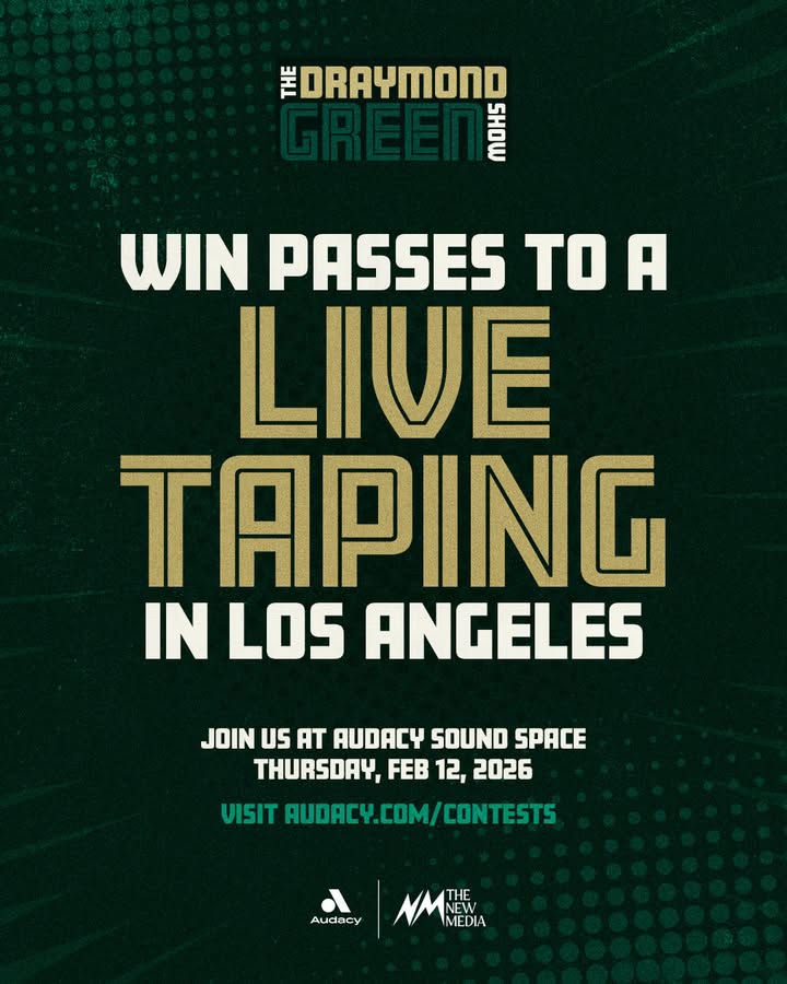 HeadingtoLAforall-starweekend?Here’syourchancetojoinTheDraymondGreenShowLIVEattheAudacySoundSpaceonFeb12!Gotothelinkinourbiotoenterforachancetowinpasses.⏰Hurry!ContestclosesFeb5.