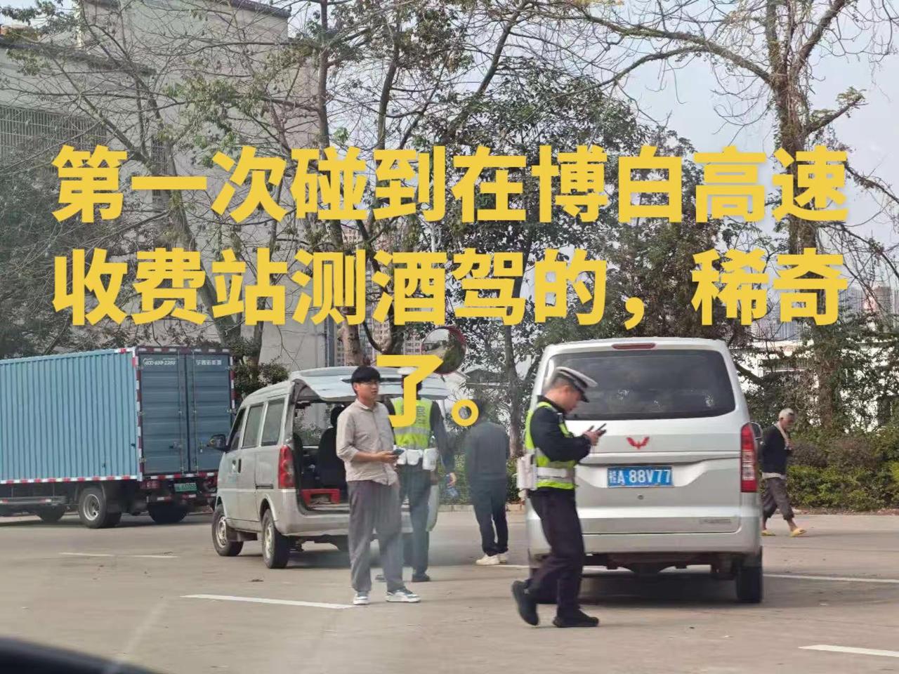 稀奇,高速路口前测酒驾第一次碰到在博白高速收费站测酒驾的,稀奇了。昨天去玉州区法