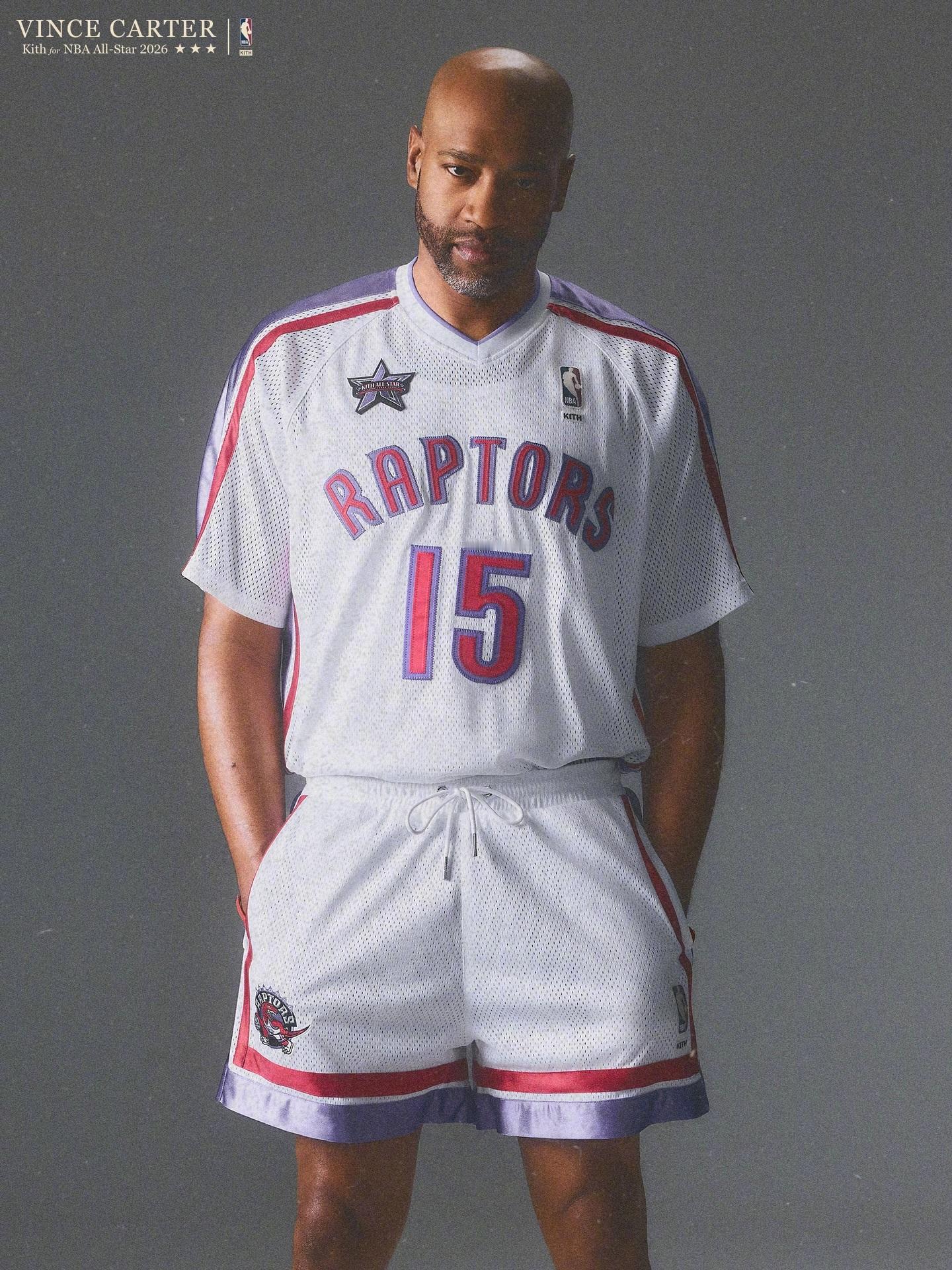 Kith携手传奇球星卡特、斯普雷维尔和麦克格雷迪,庆祝2001年NBA全明星赛25周年,同时纪念Kith成立15周年,发布的全新单品。包括猛龙、尼克斯和魔术三队的球衣、球裤还有夹克。