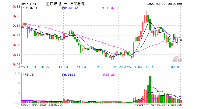 2月10日,医疗设备ETF(159873)涨0.00%,成交额709.26万元。当日份额减少200.00万份,最新份额为4.31亿份,近20个交易日份额增加1.96亿份。最新资产净值计算值为2.64亿元。