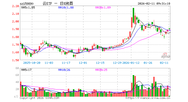 云计算ETF(159890)业绩比较基准为中证云计算与大数据主题指数收益率,管理人为招商基金管理有限公司,基金经理为房俊一,成立(2021-03-25)以来回报为88.56%,近一个月回报为1.30%。