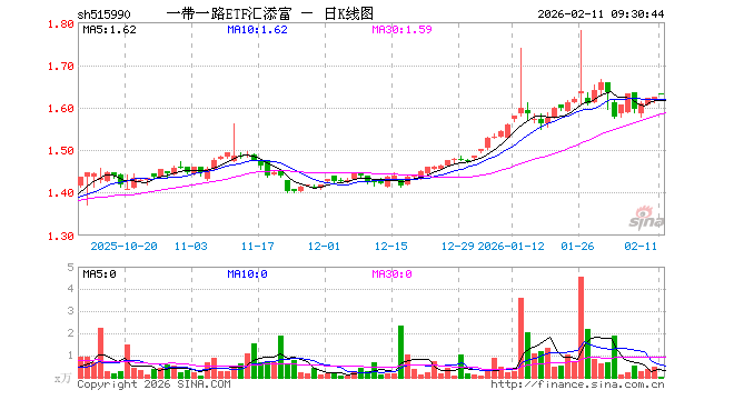 2月11日,一带一路ETF汇添富(515990)开盘涨0.43%,报1.632元。一带一路ETF汇添富(515990)重仓股方面,小商品城开盘跌0.13%,金风科技跌0.08%,中国铝业跌0.68%,烽火通信跌2.96%,东阿阿胶跌0.34%,南网能源跌1.02%,云铝股份跌0.25%,广东宏大跌0.92%,建设银行涨0.11%,中国联通涨0.00%。