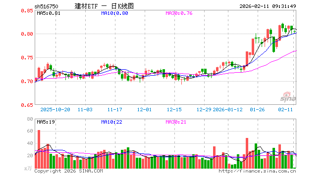 建材ETF(516750)业绩比较基准为中证全指建筑材料指数收益率,管理人为富国基金管理有限公司,基金经理为殷钦怡,成立(2021-10-28)以来回报为-19.38%,近一个月回报为9.32%。