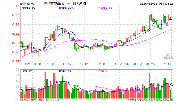 2月11日,光伏ETF基金(516180)开盘涨0.11%,报0.927元。光伏ETF基金(516180)重仓股方面,特变电工开盘跌0.54%,隆基绿能跌0.05%,阳光电源跌0.50%,TCL科技跌0.21%,通威股份跌0.53%,迈为股份跌0.04%,德业股份涨0.93%,正泰电器跌0.49%,TCL中环跌0.27%,捷佳伟创跌0.75%。