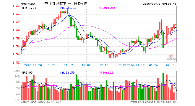2月11日,中证红利ETF(515080)开盘涨0.00%,报1.614元。中证红利ETF(515080)重仓股方面,中远海控开盘涨0.21%,广汇能源跌0.18%,中谷物流涨0.39%,山煤国际跌0.27%,平煤股份跌0.92%,潞安环能跌0.88%,鄂尔多斯跌0.92%,山西焦煤跌0.43%,陕西煤业跌0.04%,西部矿业跌0.28%。