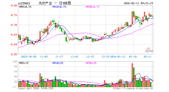 2月11日,光伏ETF鹏华(159863)开盘涨0.00%,报0.744元。光伏ETF鹏华(159863)重仓股方面,特变电工开盘跌0.54%,隆基绿能跌0.05%,阳光电源跌0.50%,TCL科技跌0.21%,通威股份跌0.53%,迈为股份跌0.04%,德业股份涨0.93%,正泰电器跌0.49%,TCL中环跌0.27%,捷佳伟创跌0.75%。