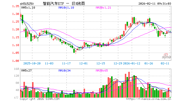 2月11日,智能汽车ETF(515250)开盘跌0.08%,报1.189元。智能汽车ETF(515250)重仓股方面,拓普集团开盘跌0.40%,豪威集团跌0.02%,科大讯飞跌0.62%,比亚迪涨0.08%,长安汽车跌0.09%,赛力斯涨0.41%,芯原股份跌2.93%,立讯精密跌0.58%,德赛西威涨0.08%,北京君正跌1.38%。