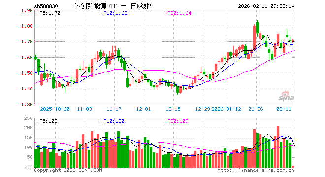 2月11日,科创新能源ETF(588830)开盘跌0.41%,报1.694元。科创新能源ETF(588830)重仓股方面,晶科能源开盘涨0.99%,阿特斯涨0.92%,天合光能跌0.54%,容百科技涨0.06%,大全能源涨0.17%,厦钨新能涨0.32%,嘉元科技跌0.09%,天奈科技涨0.02%,孚能科技涨0.00%,固德威涨0.62%。