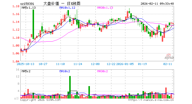 2月11日,大盘价值ETF博时(159391)开盘跌0.26%,报1.134元。大盘价值ETF博时(159391)重仓股方面,中国平安开盘涨0.09%,招商银行涨0.05%,美的集团跌0.24%,兴业银行涨0.37%,工商银行涨0.27%,农业银行涨0.00%,伊利股份涨0.19%,交通银行涨0.15%,格力电器跌0.05%,中国神华涨0.45%。