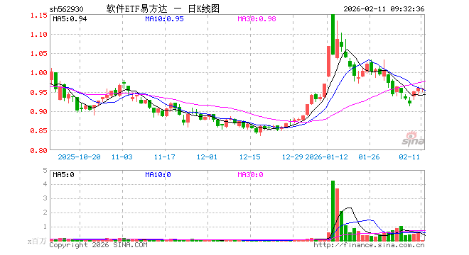 2月11日,软件ETF易方达(562930)开盘跌0.31%,报0.956元。软件ETF易方达(562930)重仓股方面,科大讯飞开盘跌0.62%,金山办公跌0.83%,同花顺跌0.23%,指南针跌0.14%,恒生电子涨0.00%,拓维信息跌0.31%,润和软件跌0.38%,三六零跌1.14%,软通动力涨0.99%。