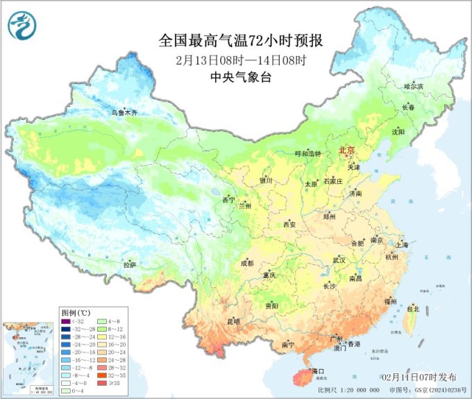 中央气象台预计,未来三天(11-13日),长江以北大部地区以多云到晴天气为主,气温逐步回升,江南、西南地区东部等地阴雨天气持续发展。其中,今天白天至夜间,全国大部地区雨雪较弱,贵州、湖南、广西、福建等地部分地区有小雨;新疆北部、西藏北部和东部、青海南部等地部分地区有小雪或雨夹雪,新疆北疆北部、西藏东部等地部分地区有中到大雪。明后两天,南方雨势有所增强,贵州、湖南等地部分地区有中雨,局地大雨;新疆北部、西藏东部、川西高原等地部分地区有中到大雪。
