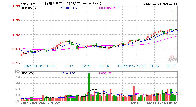 2月11日,标普A股红利ETF华宝(562060)开盘涨0.00%,报0.668元。标普A股红利ETF华宝(562060)重仓股方面,孚日股份开盘涨0.26%,奥特维涨0.67%,中创智领涨0.00%,云天化跌0.17%,天山铝业跌0.39%,德业股份涨0.93%,宇通客车涨0.00%,建霖家居涨0.37%,川恒股份跌0.26%,景津装备跌0.33%。