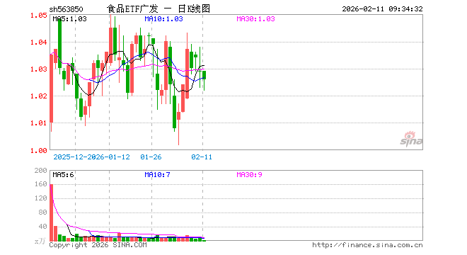 食品ETF广发(563850)业绩比较基准为同期中证全指食品指数收益率,管理人为广发基金管理有限公司,基金经理为姚曦,成立(2025-12-10)以来回报为2.74%,近一个月回报为-0.75%。