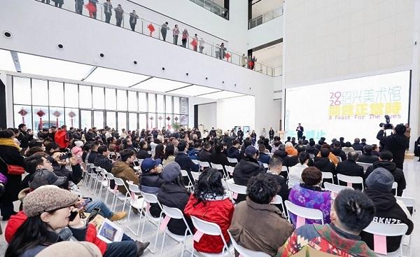 这座坐落于绍兴镜湖中心广场的美术馆,总建筑面积约2.3万平方米,内设展览区、公教区、典藏区等多功能空间,建筑设计将江南的温婉雅致与现代建筑的简约大气相融,不仅是陈列艺术品的“容器”,更成为汇聚城市文化活力的“文化磁场”。步入馆内,三大主题展览同步启幕,构成一场层次丰富、贯通古今的艺术盛宴,让不同喜好的游客都能找到看点。