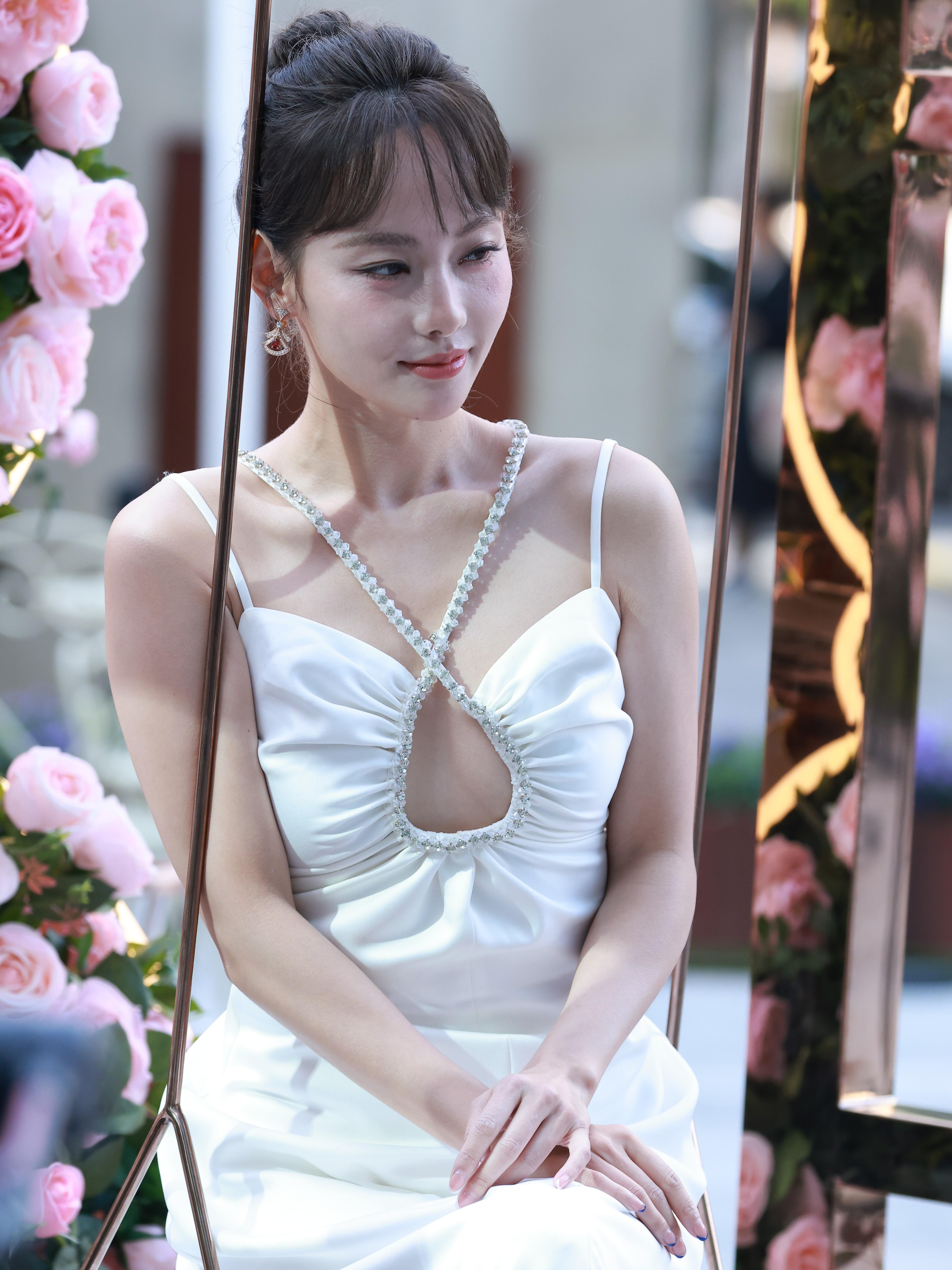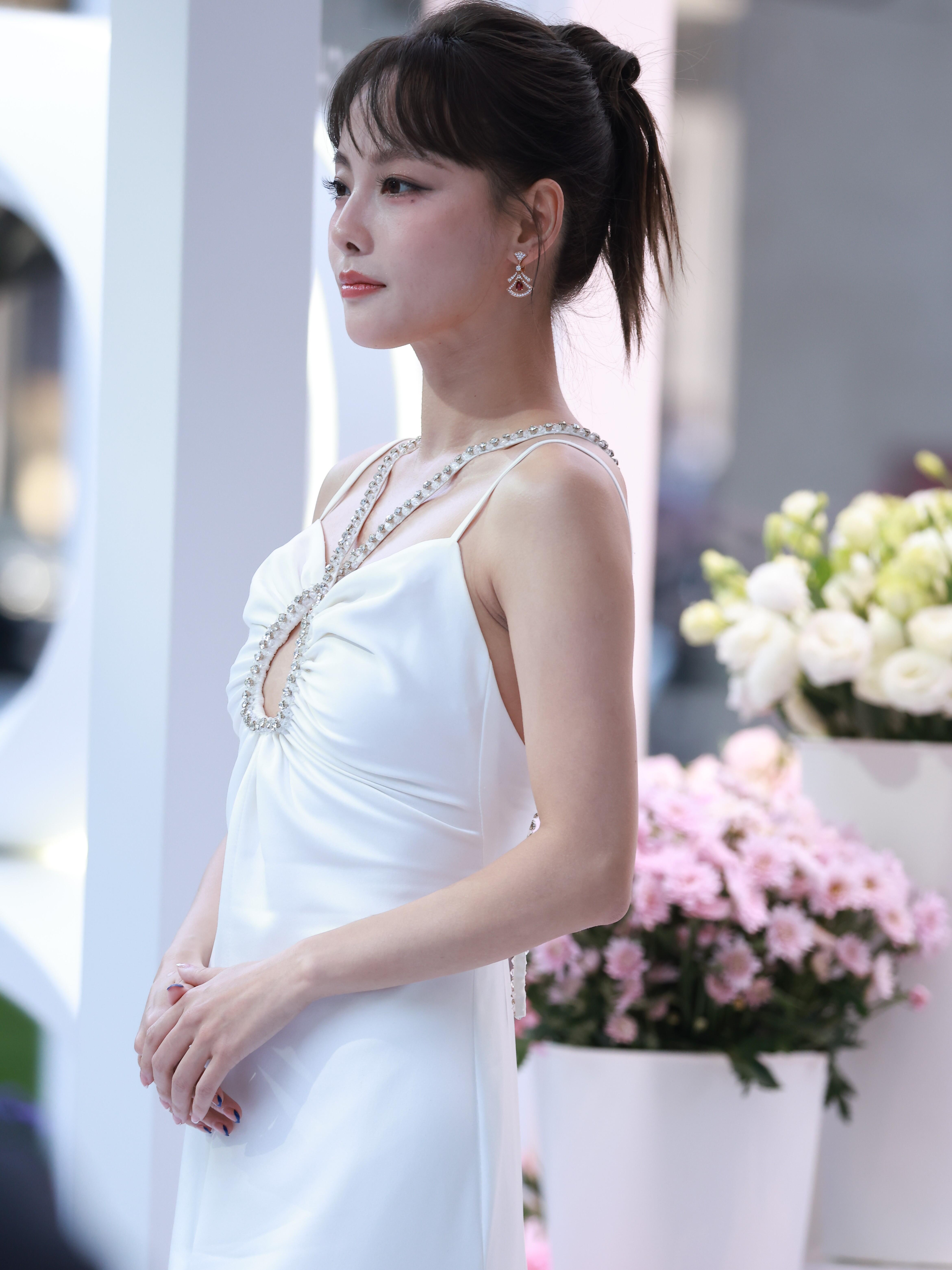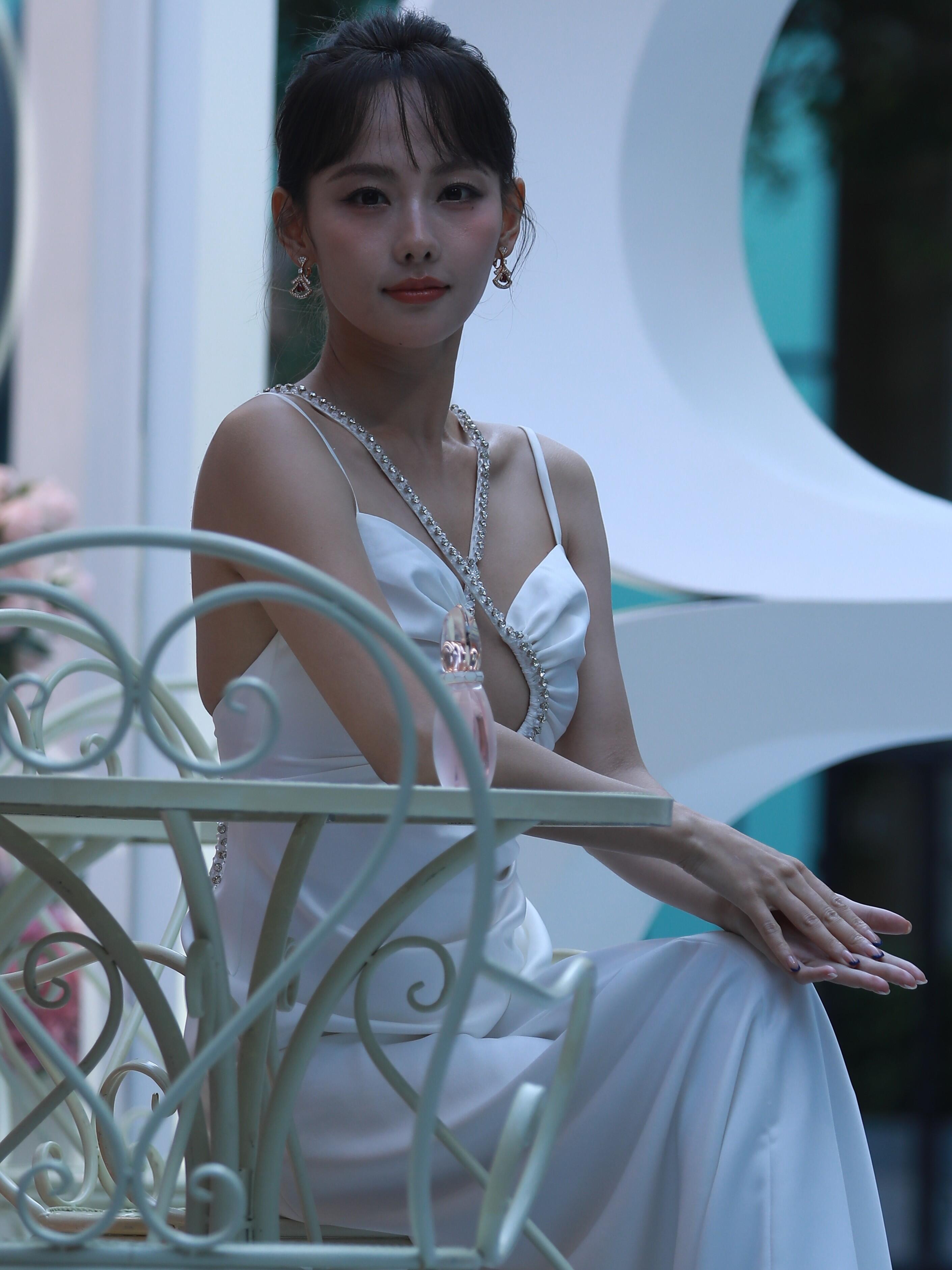 张嘉倪宝格丽活动生图,绝美白色吊带长裙!