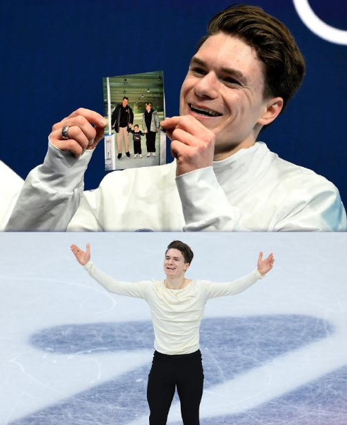 在比赛结束后,纳乌莫夫,手持父母照片以表致敬与怀念。1994年双人滑世界冠军、俄裔美籍花样滑冰名将瑙莫夫与希什科娃夫妇,去年在华盛顿发生的客机与“黑鹰”直升机相撞事故中不幸遇难。他们正是纳乌莫夫的父母。