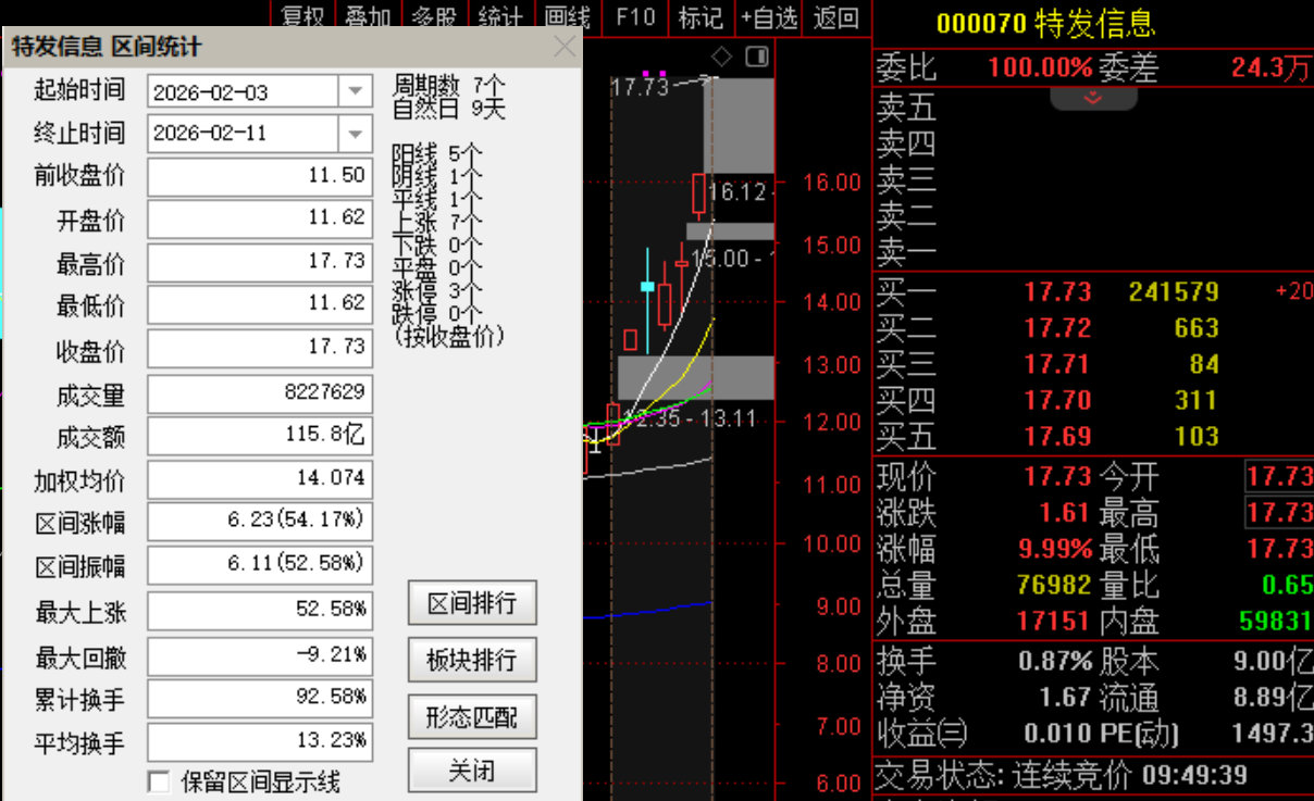 老牛在2月3日跟踪关注的:特发信息 今天再次上板! A股 $上证指数 sh000001$