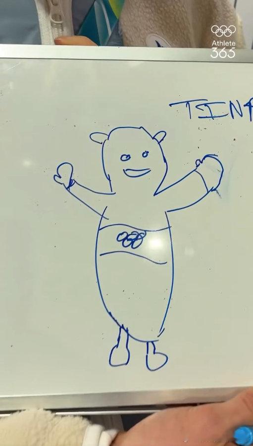 运动员笔下的Tina好抽象 看米兰冬奥会运动员手绘吉祥物Tina,嗯就很难评了~