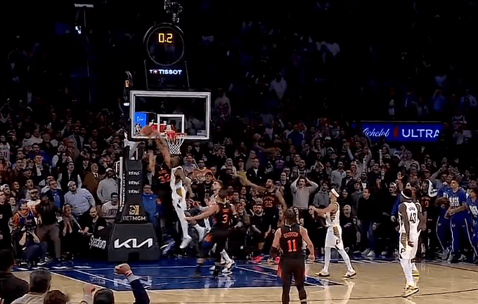 比赛的第四节,最后时刻沙梅特三分不中,唐斯补篮被对手犯规两罚全中绝平。
