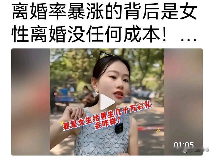 有人说,当下社会离婚率居高不下,主要原因在于女方离婚无需付出任何成本。 果真如此吗?若男方是以高昂彩礼迎娶的新娘,在短暂的婚姻后选择离婚,或许能印证上述观点。然而,若夫妻已携手走过十年,女方在离婚时还能如此洒脱,恐怕就不能简单归结为无成本了。 一位来自湖南的网友感慨道:“为何如今离婚仿佛成了一件值得炫耀之事,总有女人将其公之于众,宣告自己恢复单身。不把离婚视为一件丑事,反倒引以为傲,真让人捉摸不透她们的想法,实在令人悲哀!” 大家对此有何见解呢?婚姻彩礼困局 婚姻率下跌 离婚率排行 全国离婚率榜 两性离婚率 大城市离婚率 80离婚率