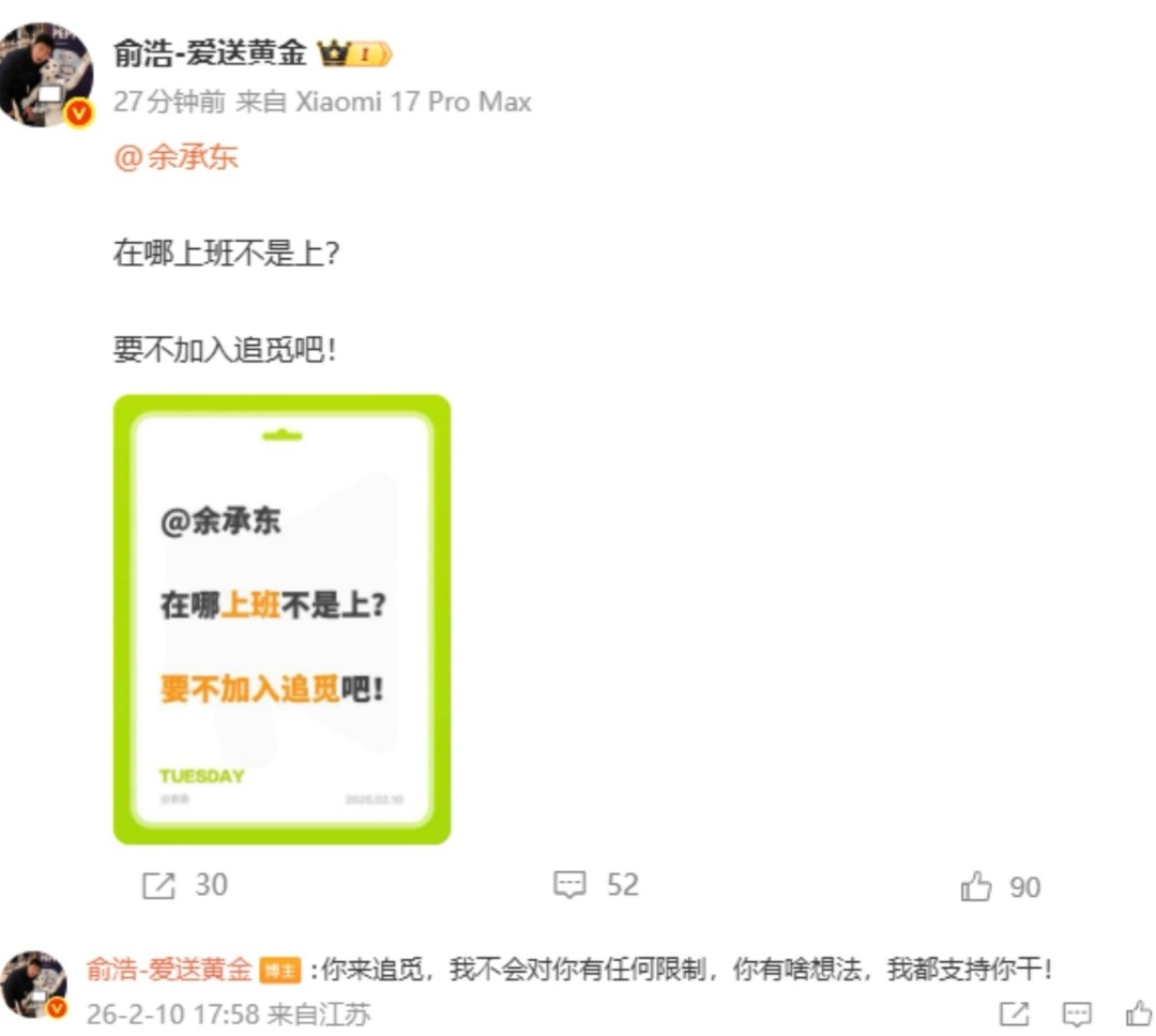 前两天不是还在对标特斯拉和马斯克?又开始蹭老余了?