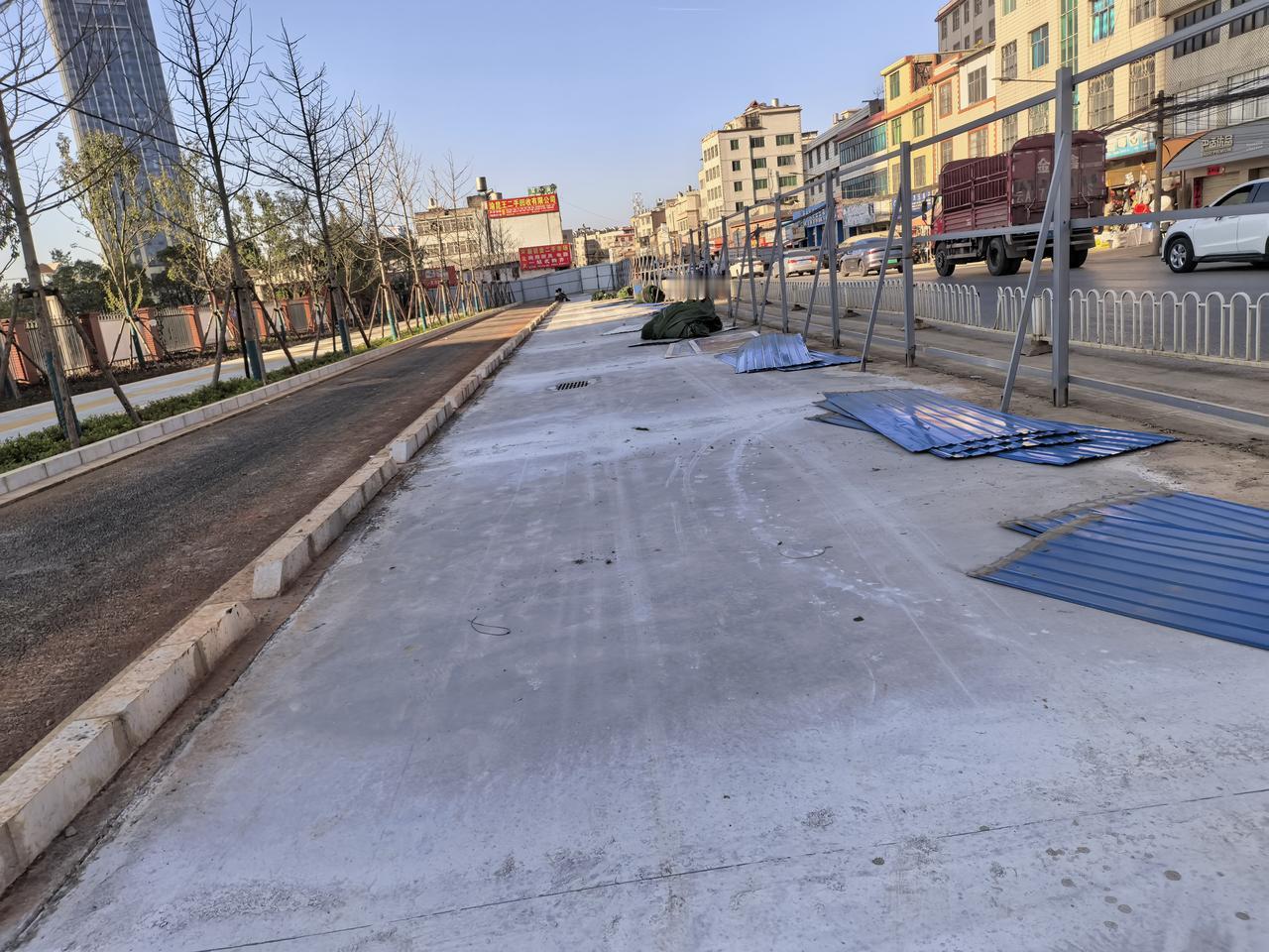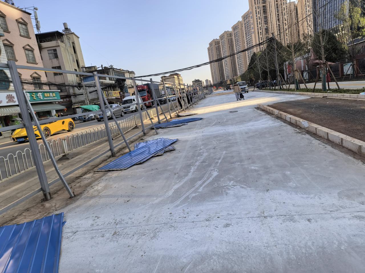 呈贡兴呈路改造造靠近绿地东海岸这一边都快完工了,道路的围档即将拆除,还有一小部分工作量了,而另外一个么向就麻烦了,主要还是有几个地方沿路过黄线范围内还有几幢老房子没有拆除,而且里面还有人居住,这个就比较麻烦了,其实只要资金到位,什么工程都可以干出中国速度来的,另外一面得几年,几十年?反正里面东一幢西一幢老房子在里面,拆迁是一件头痛的大事。