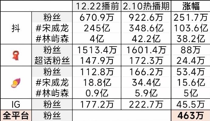 宋威龙林屿森数据断层领先,全平台涨粉463万,有效播剧