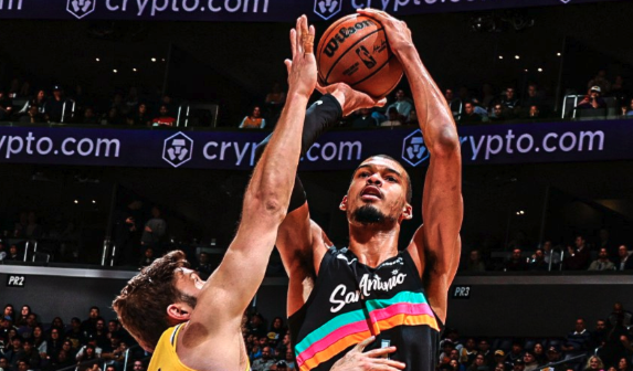 比赛上半场,马刺球员维克托-文班亚马首发出战18分钟,17投12中,三分球5投3中,罚球12罚10中得到37分8篮板2助攻1抢断1封盖。