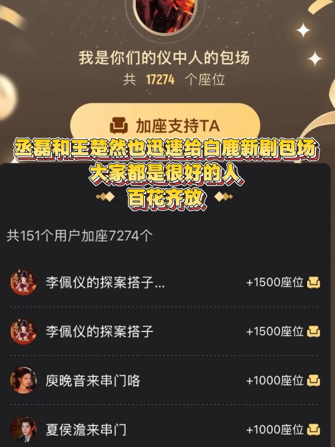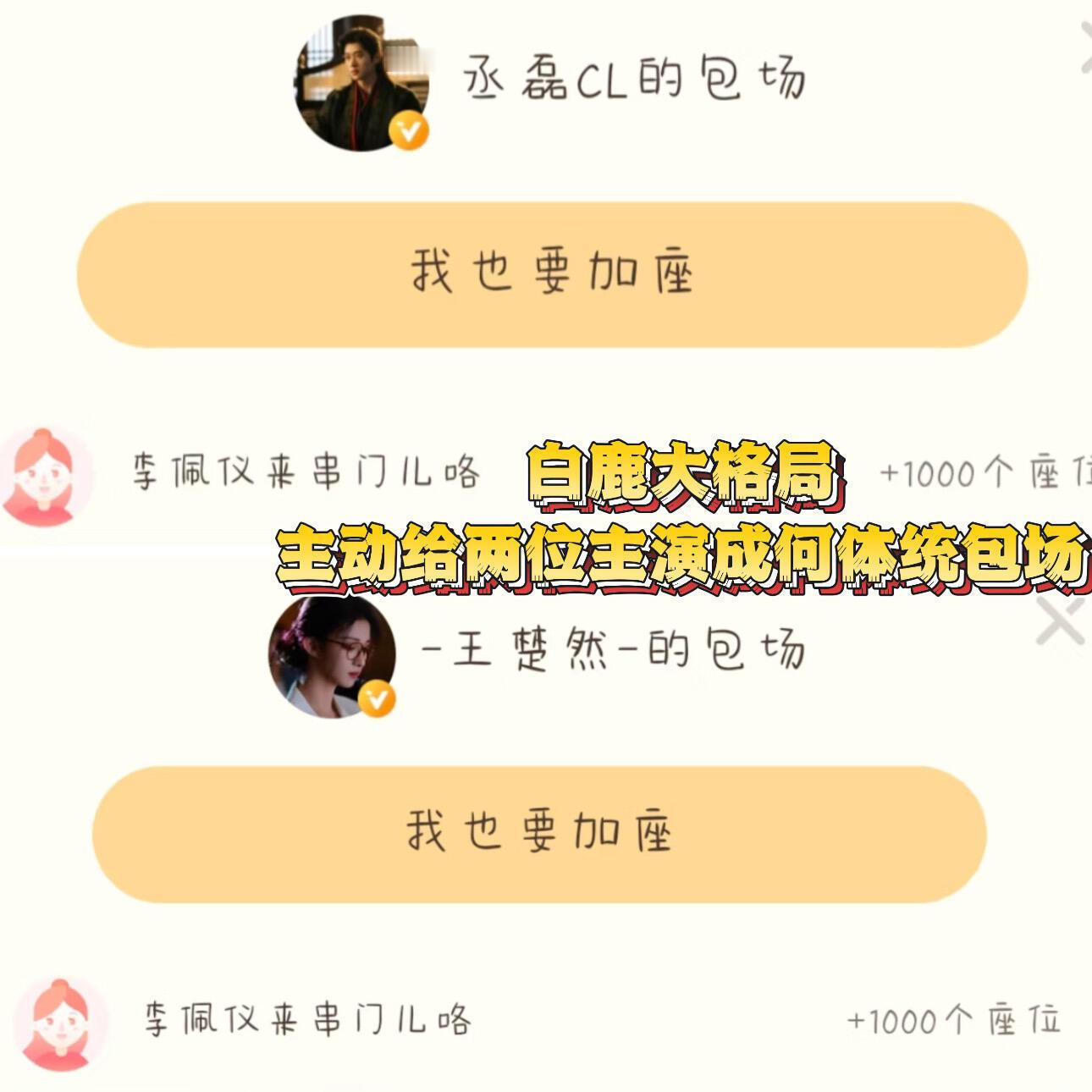 支持百花齐放|一群很好的人白鹿在新剧开播的时候大格局的包场了成何体统丞磊和王楚然也迅速回礼丞磊看了白鹿的《北上》和陈哲远的《白色橄榄树》王楚然看了白鹿的《白月梵星》白鹿陈哲远丞磊这三人也是经常互相宣传包场