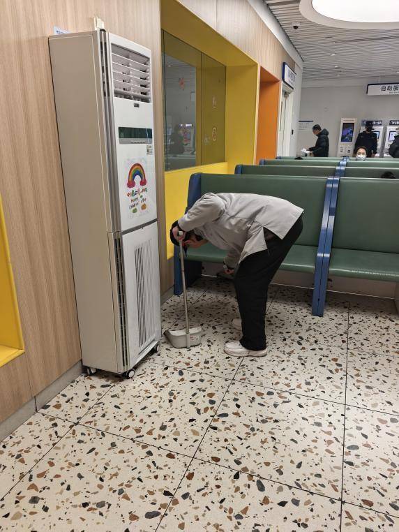 在北京世纪坛医院儿科门诊的日常运转中,除了医生、护士的悉心诊疗,还有一些平凡却不可或缺的身影——他们静默守护在就诊动线的角落,用细致与勤恳让服务更有温度。继保安大哥、外勤大姐之后,今天让我们走近儿科门诊的保洁员蒋同刚大叔。