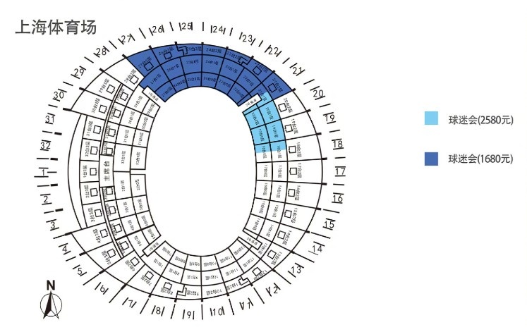 价格方面,球迷会北看台1680元一套,球迷会东看台2580元一套。散客套票分4档,价格为2280元一套、3080元一套、3980元一套以及5780元一套。
