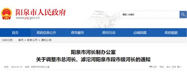关于调整市总河长、滹沱河阳泉市段市级河长的通知