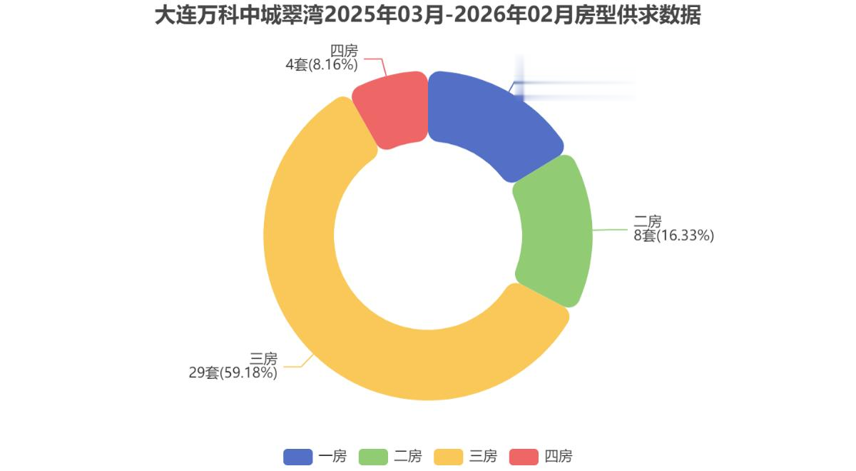 当前项目均价17500-17800元/㎡,较2021年开盘价25500元/㎡下降约30%。2026年1月甘井子区新房成交均价12246元/㎡,万科中城翠湾虽略高,但凭借品牌、地铁、现房优势,仍具竞争力。