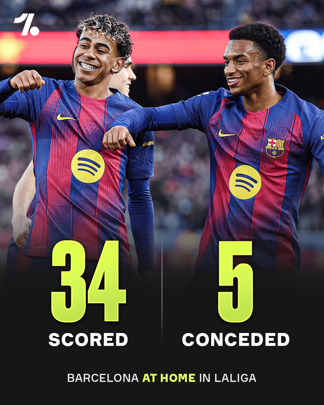 对于巴塞罗那而言,没有比家更好的地方了——他们在主场联赛打进了34个球,但只有5个失球,而且还没有输过球。