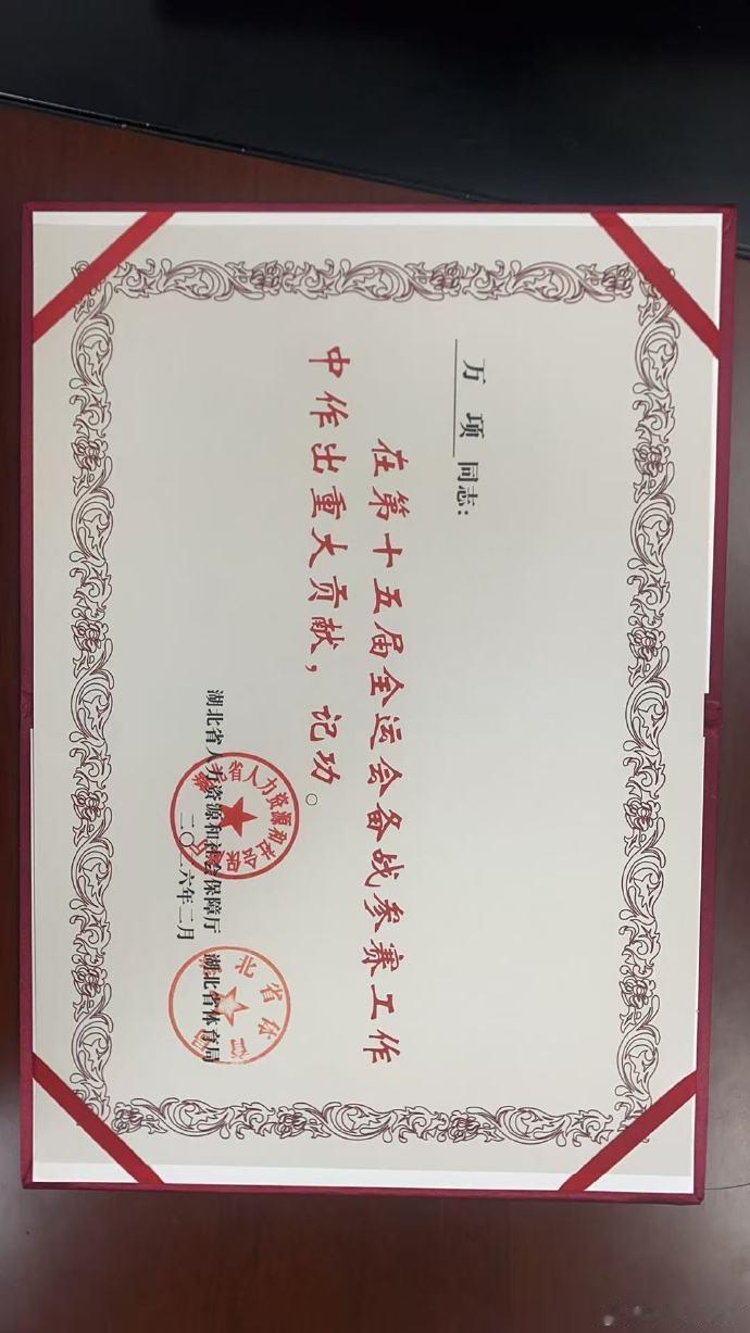 在去年的全运会男足U16组别中,万项帮助湖北队获得银牌,因而获得记功证书。不出意外的话,万项今年5月将代表U17国足出战U17亚洲杯。